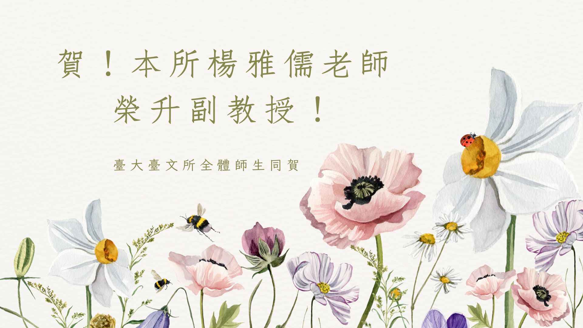 賀!本所楊雅儒老師榮升副教授!